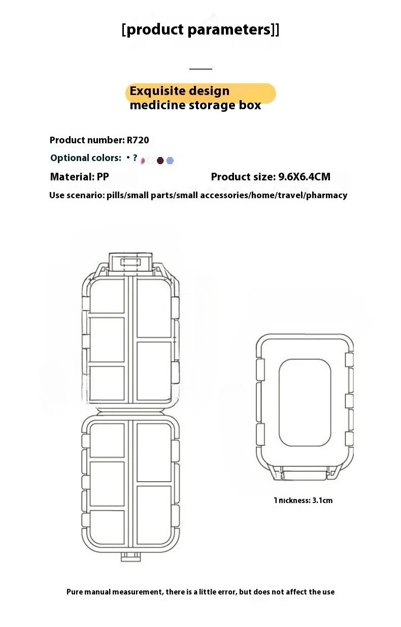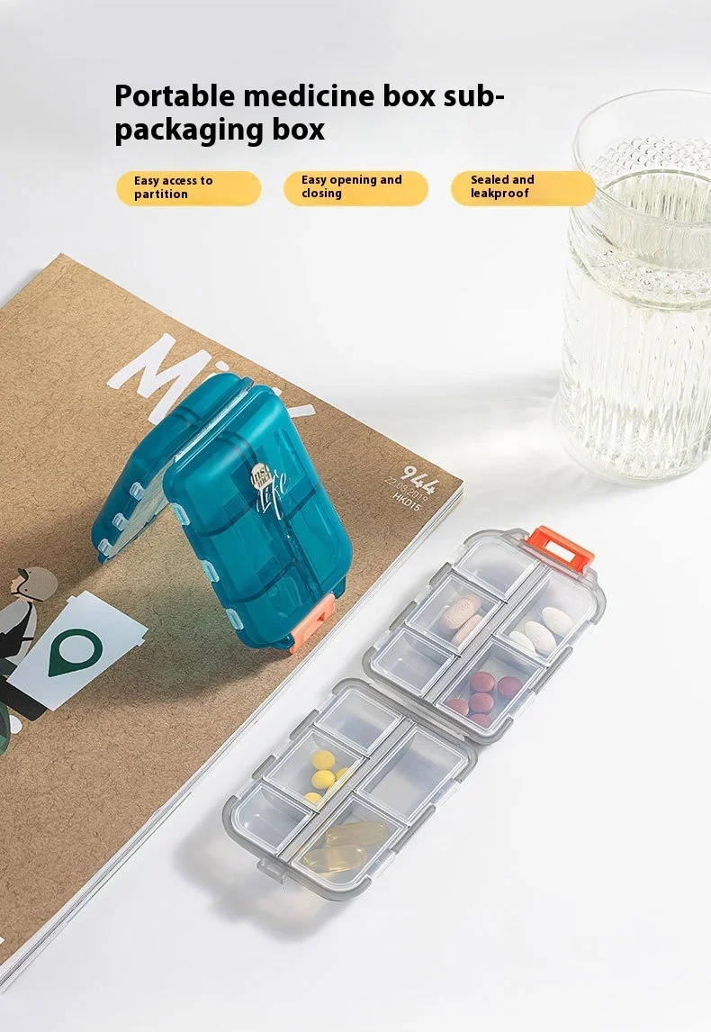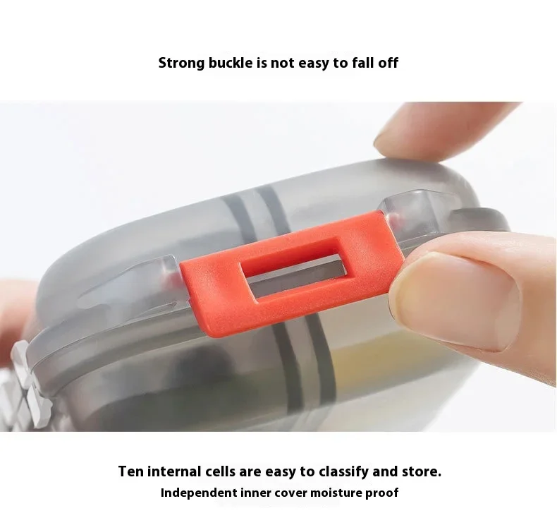 JUSTLANG Box Waterproof Seal Moisture Proof Portable Medicine Independent Small Grid Pill Container Storage Tablets 10 Cells